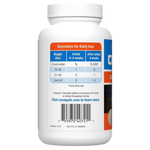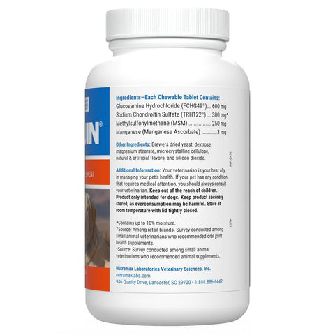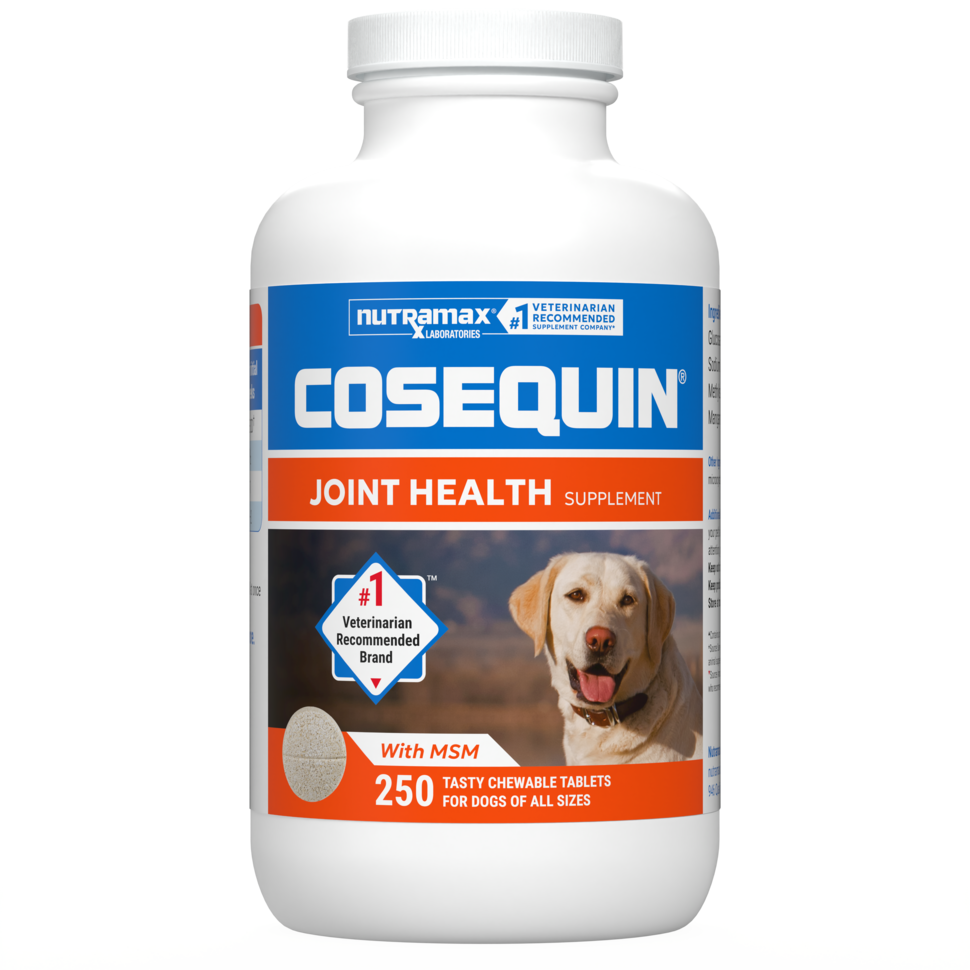 Cosequin® for Dogs Plus MSM Chewable Tablets contains FCHG49 Glucosamine Hydrochloride, TRH122 Sodium Chondroitin Sulfate, and methylsulfonylmethane (MSM). This combination of ingredients helps support your dog's healthy cartilage.